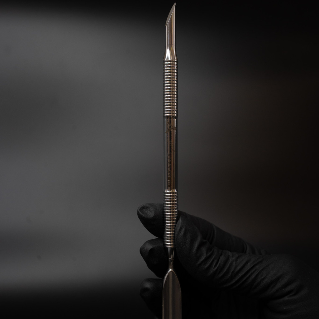 Professzionális, kétoldalas PRO kutikula bőrfeltoló és bőrkaparó manikűr és pedikűr előkészítéséhez. Segítségével a kutikula kíméletesen megemelhető és visszatolható, a letapadt bőr és gél lakk maradványok pedig precízen eltávolíthatók.